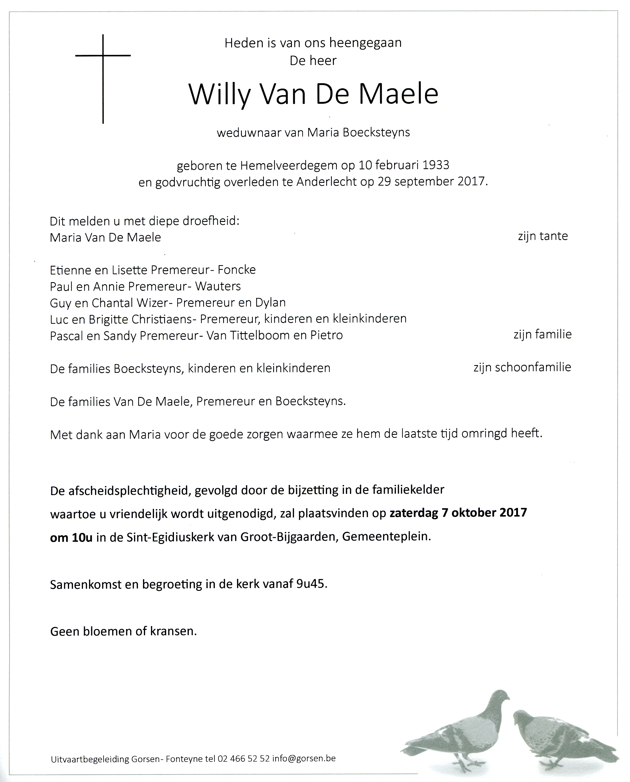 zal plaatsvinden op zaterdag 7 oktober 2017 om 10u in de Sint-Egidiuskerk van Groot-Bijgaarden.
