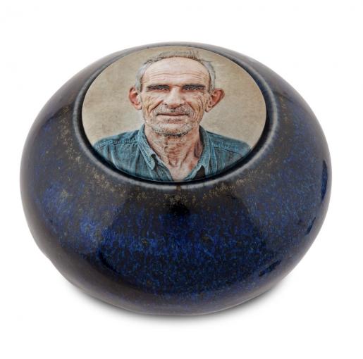 Deze handgemaakte keramische mini-urnes worden gepersonaliseerd door middel van een ronde porseleinfoto. (Dia: 5cm)