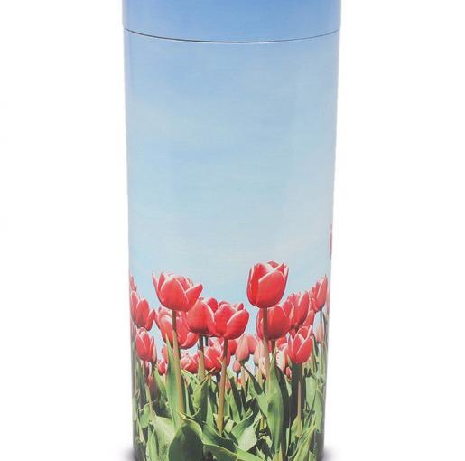 De strooi-urne bestaat uit twee in elkaar passende kokers afgedekt met een afneembaar deksel.